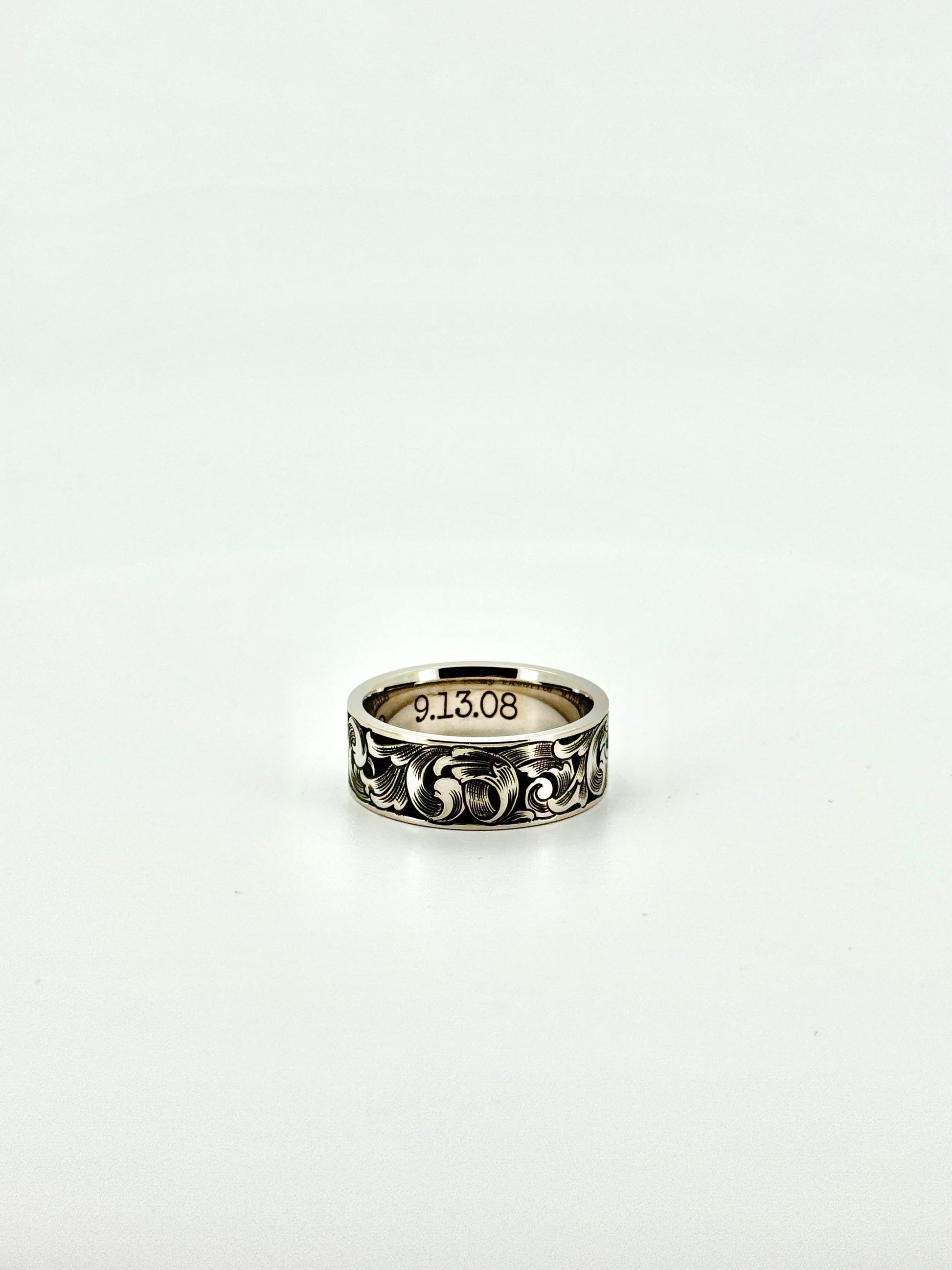 Celebrate your love with a unique, one-of-a-kind Silver wedding band, custom engraved to reflect your personal style and commitment. Our custom wedding bands are crafted with the finest quality Sterling Silver and precision engraving, designed to make your special day even more memorable.